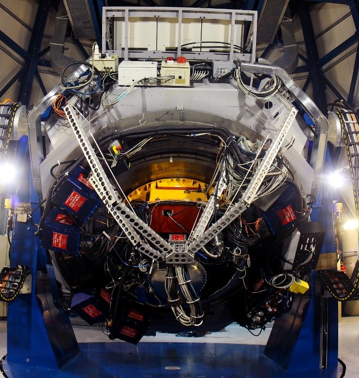 Cámara OmegaCAM acoplada al VST de 2,6 metros, fotografía un campo de 1 x 1 grados, un campo amplio que se dedica al rastreo del cielo.