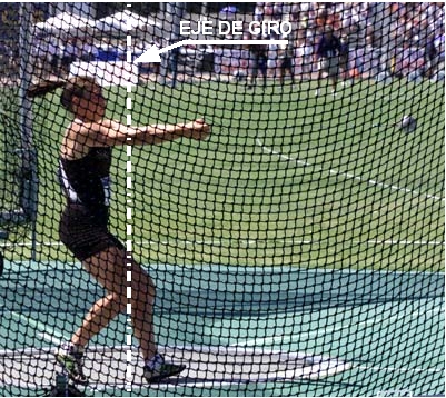 én está arqueado. El verdadero eje de giro pasa por el ombligo del atleta, en tanto el resto del cuerpo se arquea en sentido contrario para compensar la fuerza ejercida por el martillo sobre él. Si el martillo fuese transparente, o tan pequeño que no lo viésemos, podríamos detectar su existencia por el arqueo del cuerpo. En la foto inserta, además la posición del pelo de la lanzadora muestra claramente que ella también sufre los efectos de la fuerza centgrífuga. "El lanzador de martillo gira alrededor del centro común de masas." Igual le sucede a la Tierra con la Luna, o al Sol con los planetas. Dada la gran diferencia de masas existente entre el Sol y la Tierra, el movimiento de la Tierra es muchísimo más evidente que el del Sol, pero este también se mueve.