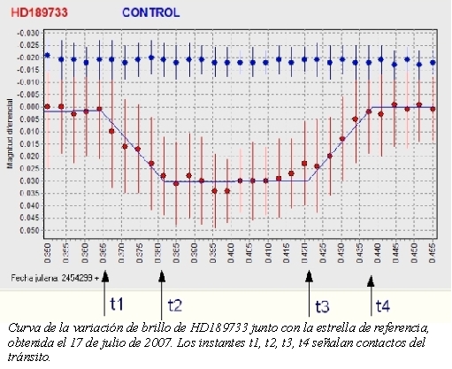 Tránsito: Los exoplanetas orbitan alrededor de una estrella, si se tiene la suerte de que el planeta, visto desde la Tierra, cruza por delante de la estrella, durante el tiempo que pasa por delante oculta ligeramente a la estrella, lo que produce una pequeñísima disminución de su brillo. En general la variación producida es del orden de algunas centésimas de magnitud o menor. La variación del brillo da información adicional sobre el tamaño de la estrella, del planeta, la distancia a la que se mueve, etc. Si se conoce el diámetro de la estrella por otro método, con el periodo y el tiempo de transito se puede determinar la distancia entre la estrella y el planeta. El espectro de la estrella en los instantes de comienzo y fin del tránsito dan información sobre la atmósfera del planeta.