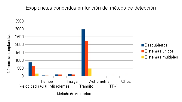 Los datos numéricos se han tomado de la web: http://www.exoplanet.eu/ corresponden a las cifras publicadas en enero de 2020.