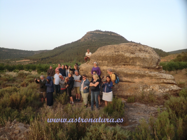 Durante la espera se produce un diálogo interesante sobre el altar alrededor del que nos encontramos y la hipótesis sobre la alineación de los altares con el orto solar, fecha de inicio de un calendario. Algo parecido a la reunión que debía tener lugar en este mismo lugar hace más de 2.000 años para presenciar el mismo fenómeno, el orto solar desde los altares de Alpuente. Entonces debía ser un ritual de gran profundidad en el que un grupo numeroso de los habitantes de la zona, seguramente dirigidos por algún chamán, sacerdote... realizaba un ritual coincidiendo con la salida del sol por la posición más al norte. Que conocimientos tendrían de la mecánica celeste lo desconocemos, pero la observación diaria de la salida del sol evidencia que la dirección por la que sale cambia de día en día. Actualmente nosotros tenemos un conocimiento preciso de los movimientos de los planetas, y por supuesto la Tierra alrededor del sol, pero nuestra vida en la ciudad, generalmente rodeados de edificios y con un horario que no precisa la luz solar nos ha hecho perder la perspectiva que tenían los antiguos habitantes de estas tierras. Pese a nuestros conocimientos ver salir el sol junto al altar siempre resulta emocionante. Hoy con la colaboración de la Asociación de Amigos de Alpuente y de la Asociación Astronómica de Albuixech y la difusión que ambas asociaciones han realizado entre sus socios un grupo de 20 personas hemos presenciado el evento astronómico que coincide con el comienzo del verano.