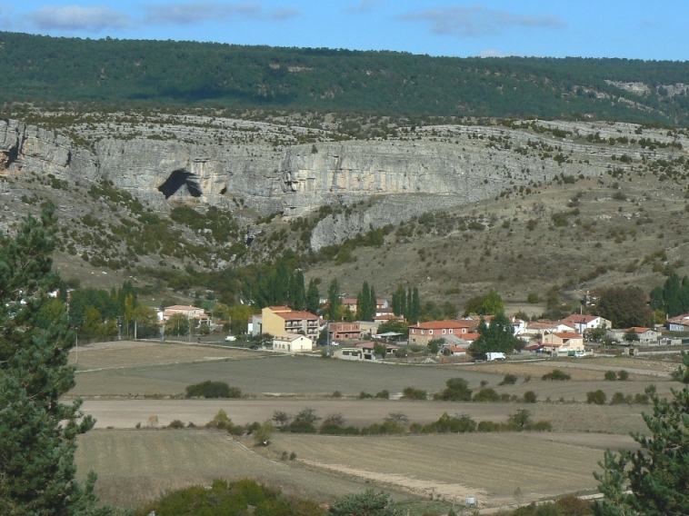 El barrio de la Cueva es el núcleo urbano más grande de los que conforman la Vega del Codorno, al fondo la cueva.