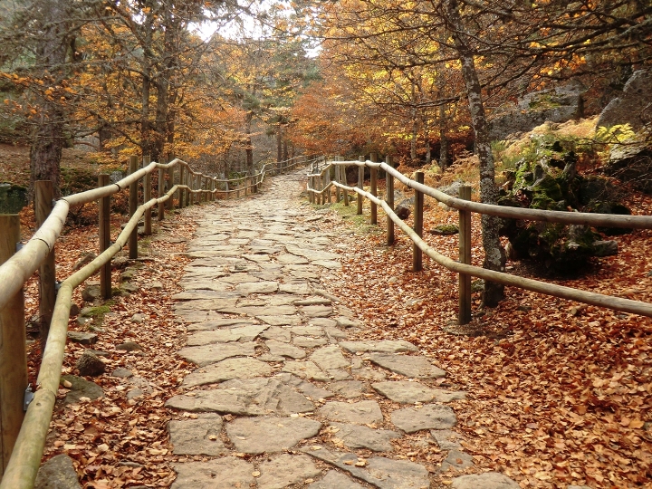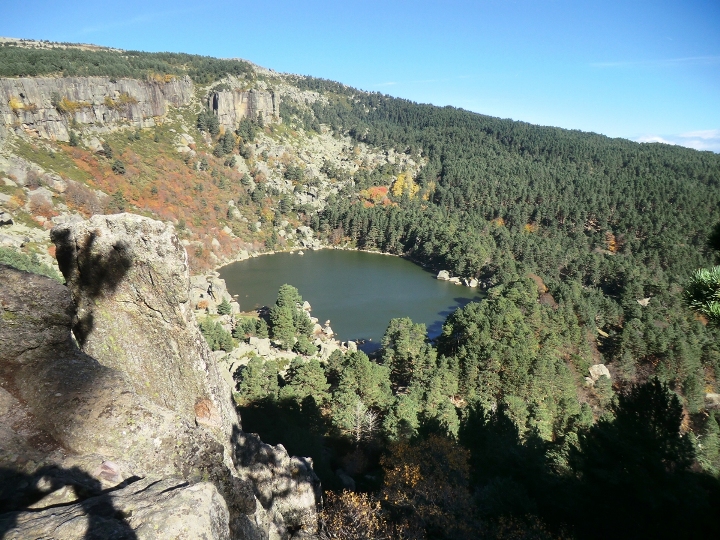 Recorrido Salimos del aparcamiento por un amplio camino, enlosado con grandes piedras y flanqueado por vallas de madera, asciende por un magnífico hayedo. En las fechas que realicé esta excursión, otoño, el suelo estaba cubierto por una gruesa alfombra de hojas de haya. El amarillo intenso se extiende a ambos lados del camino, iluminado por el sol de primeras horas de la mañana. A unos 100 metros el camino se divide, el de la derecha nos lleva a una pasarela de madera, en la orilla, y unos metros por encima de la Laguna Negra; de gran belleza, cerrada por el oeste y sur por altos cinglos, de los que se desprenden grandes bloques moteando la exuberante vegetación. Seguimos la pasarela hacia la izquierda hasta el final, donde comienza el sendero.
