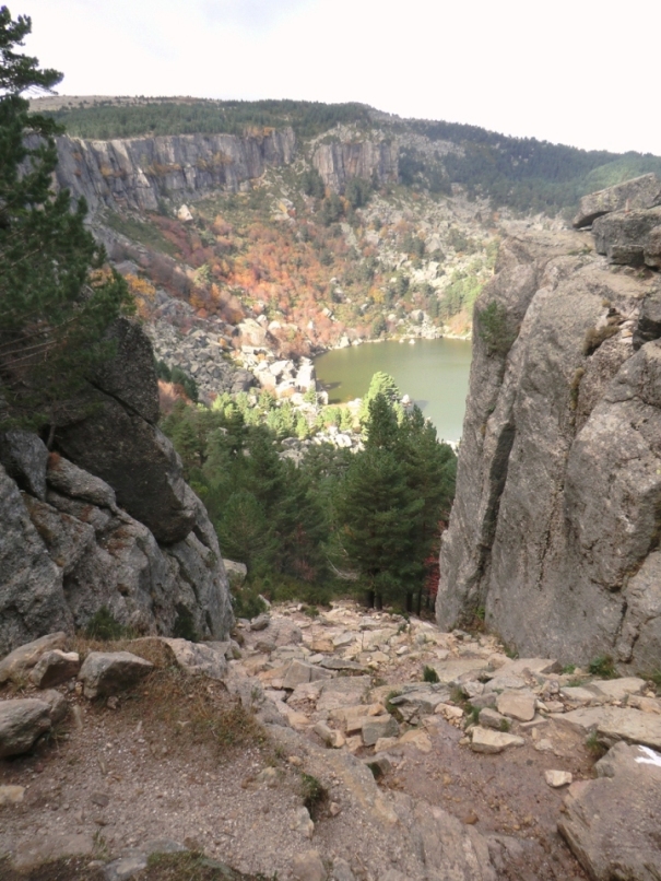 Por esta canal el sendero salva el cinglo que cierra por el sur y oeste la Laguna Negra.